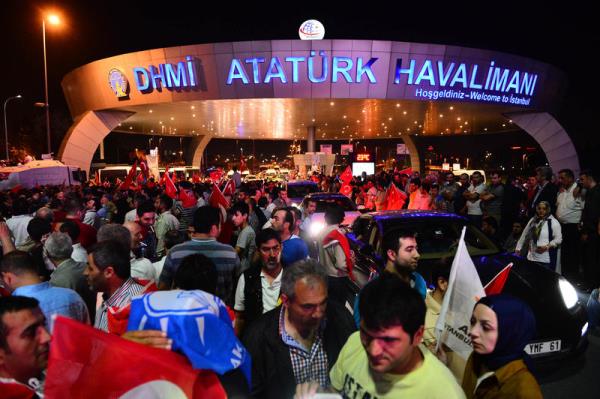 Bir dizi temas için 3 Haziran'da çıktığı Fas, Cezayir ve Tunus gezisinden bu gece dönmesi beklenen Başbakan Recep Tayyip Erdoğan'ı, Atatürk Havalimanı'nda kalabalık bir grup karşıladı. Sosyal medya üzerinden organize olan, Türk bayrakları ve AK Parti flamaları taşıyan coşkulu bir grup, Atatürk Havalimanı Devlet Konukevi önünde bekledi.
