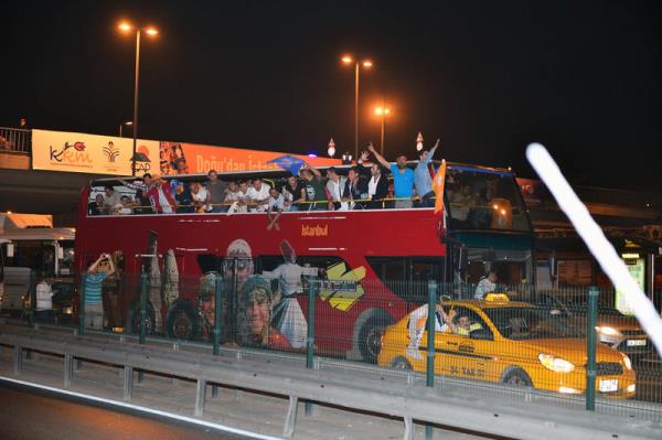 Bir dizi temas için 3 Haziran'da çıktığı Fas, Cezayir ve Tunus gezisinden yurda dönen Başbakan Recep Tayyip Erdoğan, Atatürk Havalimanı'nda kendisini bekleyenlere seslendikten sonra Üsküdar Kısıklı'daki konutuna seçim otobüsüyle geçti.