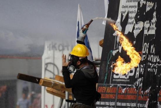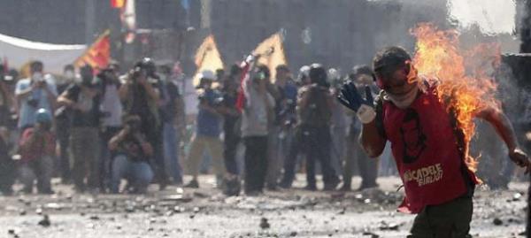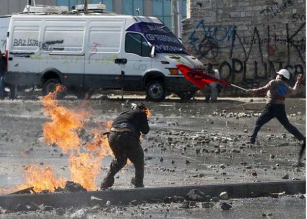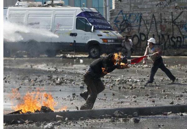 İstanbul'da gezi parkı olaylarında eylemciler polise molotof atmak isterken kendilerini yaktı.