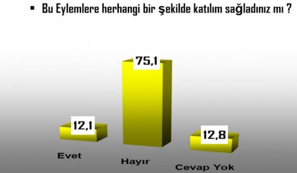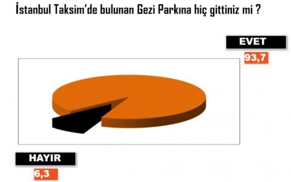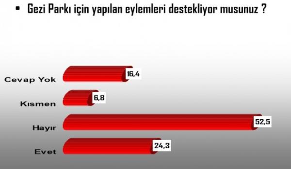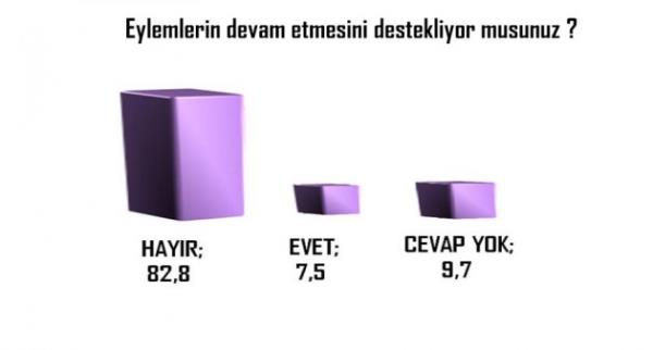 ANDY-AR şirketinin 21 ilde yaptığı anket Gezi Parkı eylemlerine destek verenlerin yüzde 24.3'te kaldığını, eylemlerin bitmesini isteyenlerin ise ezici çoğunluk olduğunu gösterdi