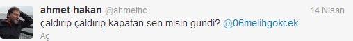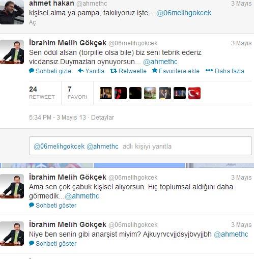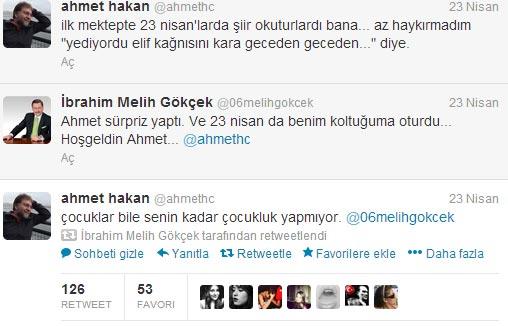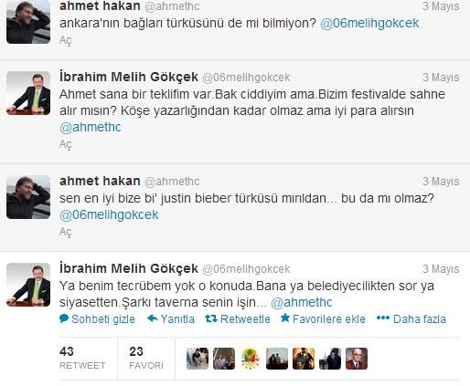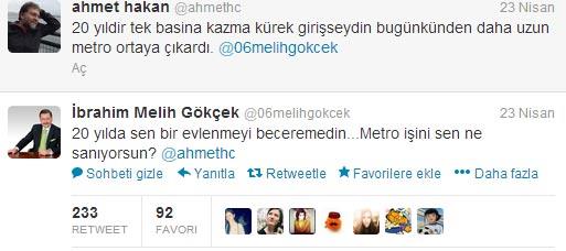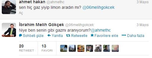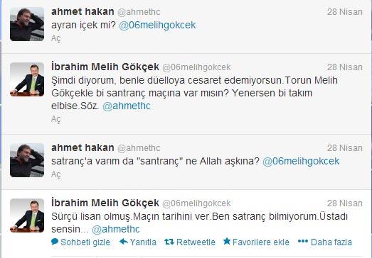Ünlü gazeteci Ahmet Hakan ve Ankara Büyükşehir Belediyesi Başkanı Melih Gökçek'in twitter hesapları üzerinden birbirleri ile atışması, sosyal medyada takipçilerini güldürüyor...