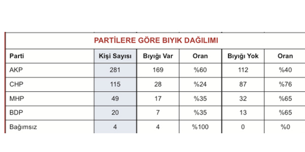 Kaynağı oluşturan TBMM sitesindeki özgeçmişlerde milletvekillerinin fotoğrafları da yer aldığından, merak edip veritabanında bir de bıyık tercih eden erkekler için bir sütun açmıştım. Diğer verilerle bıyık arasında ilginç olabilecek bağlantılar gördüğüm için o bulguları da listeliyorum.Toplam 469 erkek milletvekilinin 225'i (H) bıyıklı, 24'ü (R) bıyıksız.