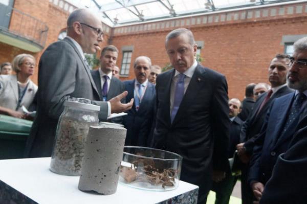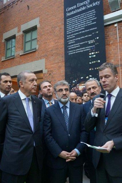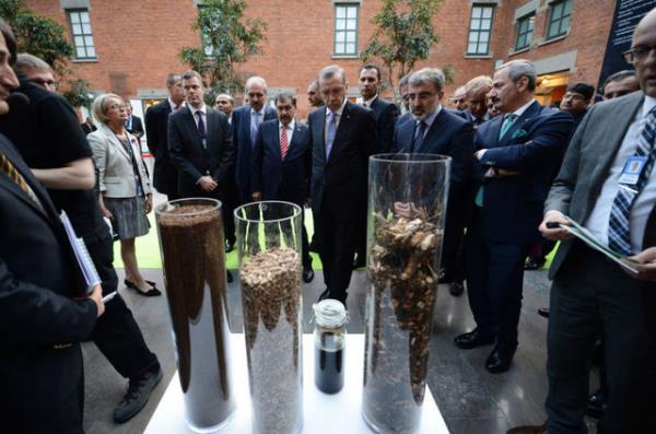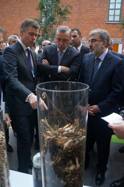 Fortum Enerji şirketinde bio yakıt, ağaç ürünleri, şehir atıkları, dalga gücü, su ve güneşten enerji üretimine ilişkin şirket yetkililerinden brifing alan Başbakan Erdoğan, dalga gücü, ağaçtan enerji üretimi ve evsel çöp atıklarından beton üretimiyle ilgilendi.
