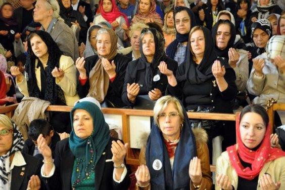 Mevlidde üzerinde Atatürk resimlerinin bulunduğu Türk bayrakları önünde dua edildi.