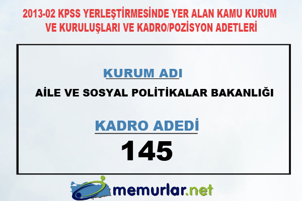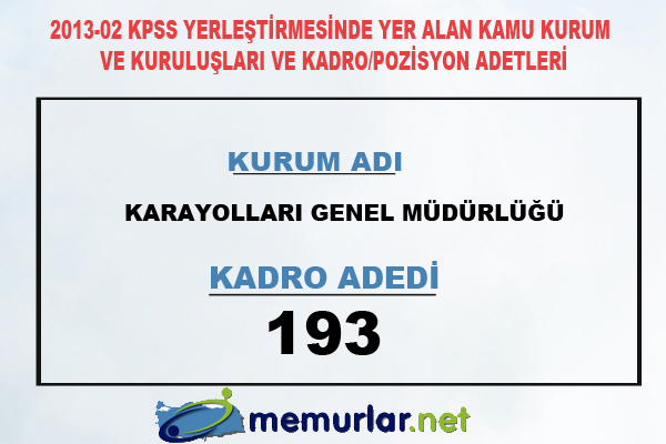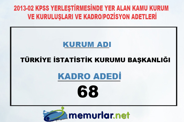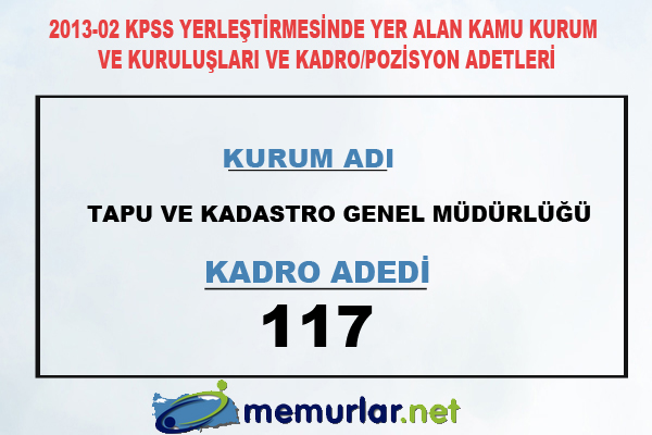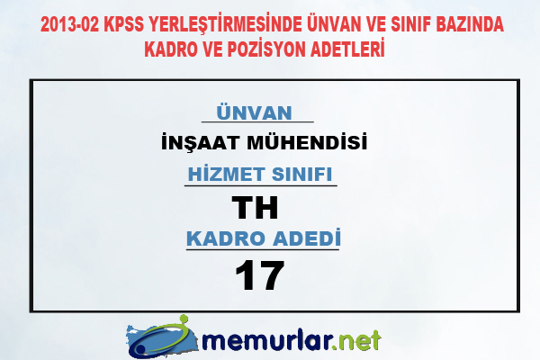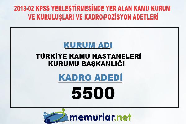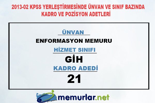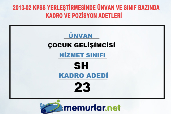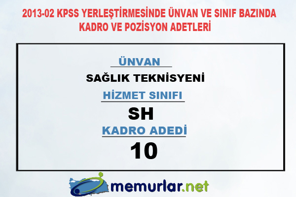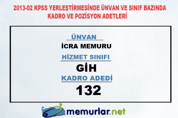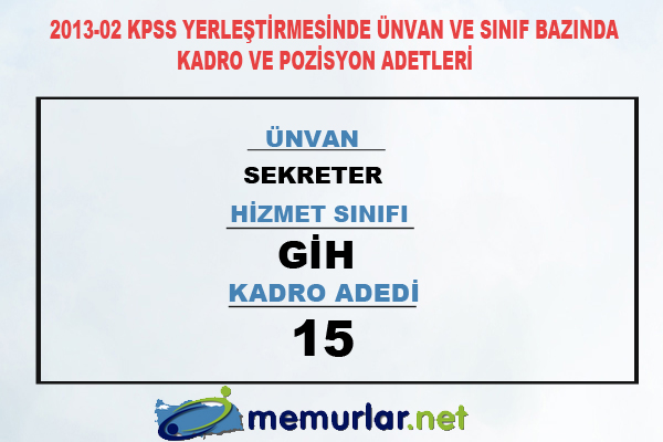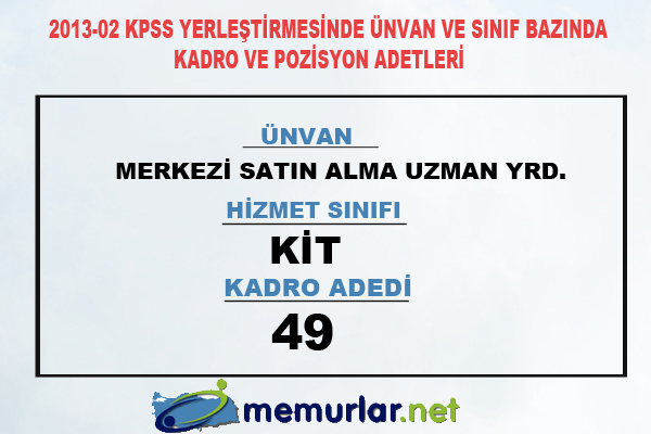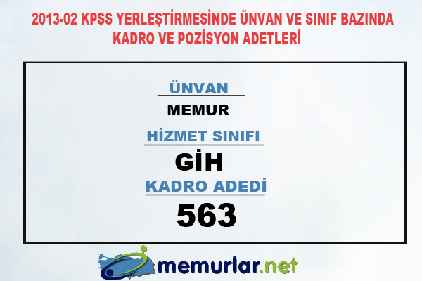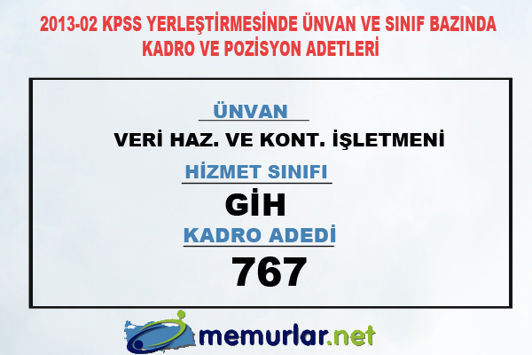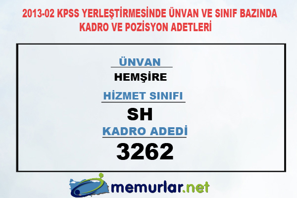 2013-02 KPSS yerleştirmesinde ünvan ve sınıf bazında kadro ve pozisyon adetleri