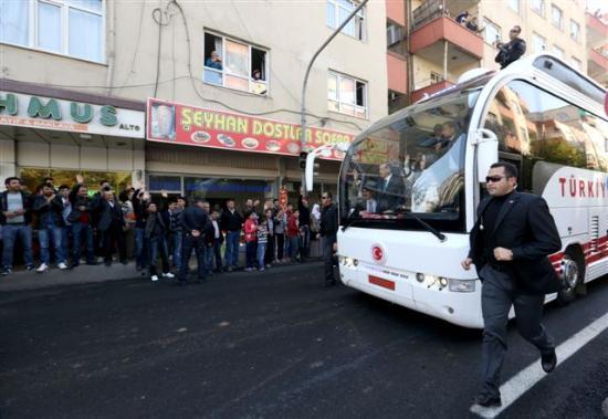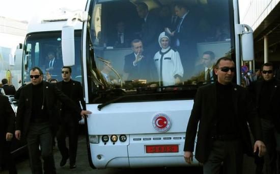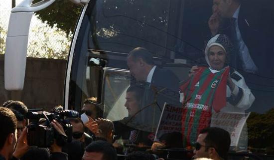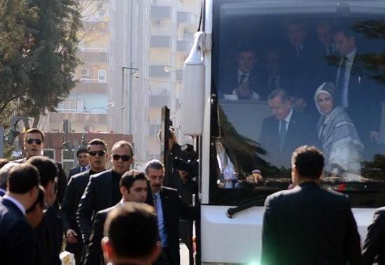 Başbakan Erdoğan, daha sonra otobüsle Büyükşehir Belediyesi'ne doğru yola çıktı.