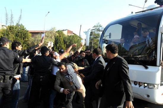 Yoğun güvenlik önlemleri altında Kuruçeşme mevkisi güzergahına doğru hareket eden Başbakan'ın yer aldığı otobüsün önü sık sık vatandaşlarca kesildi.
