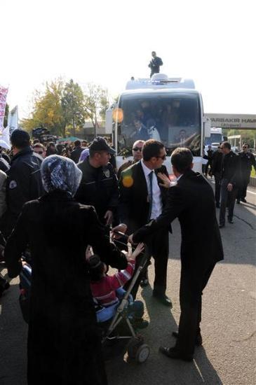 Başbakan Erdoğan'ı Diyarbakır Havaalimanında İçişleri Bakanı Muammer Güler, Milli Eğitim Bakanı Nabi Avcı, Gıda Tarım ve Hayvancılık Bakanı Mehdi Eker, Diyarbakır Valisi Mustafa Cahit Kıraç, Diyarbakır Büyükşehir Belediye Başkanı Osman Baydemir, Diyarbakır Bağımsız Milletvekili Leyla Zana, BDP milletvekilleri Sırrı Sakık, Altan Tan, Esat Canan ile İl Emniyet Müdürü Recep Güven ve öteki yetkililer karşıladı.