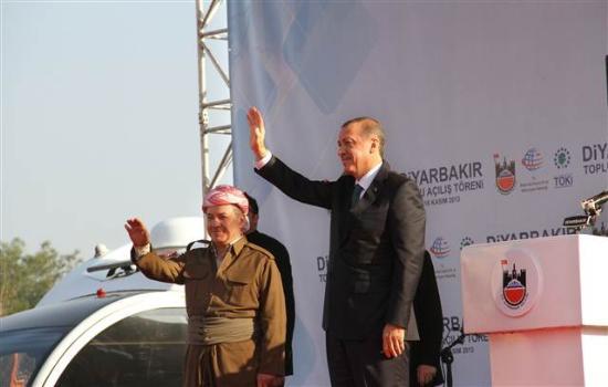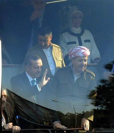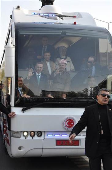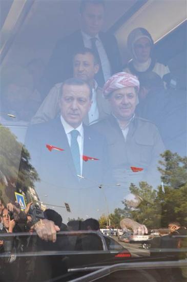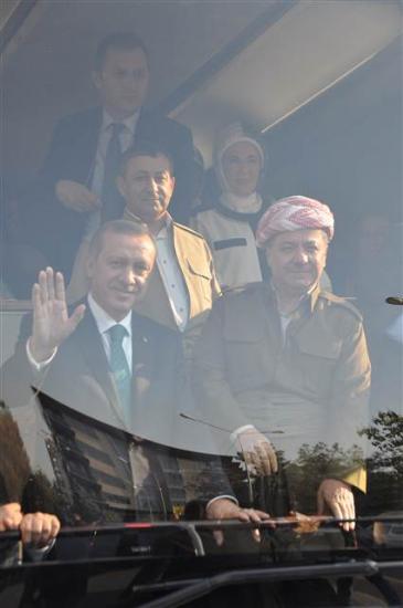 Başbakan Erdoğan ve Barzani, miting alanına birlikte gitti. -