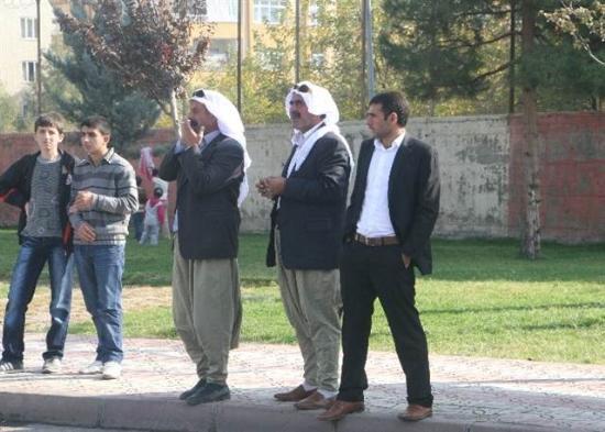 Kalabalık nedeniyle trafiğin aksaması üzerine bir vatandaş polis aracından yolun açılması için Kürtçe-Türkçe anons yaptı.