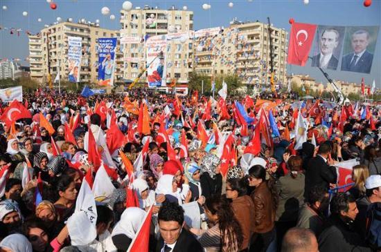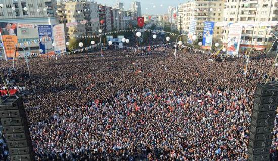 Başbakan Erdoğan konuşmasında şunları söyledi: - Diyarbakır, ey Diyarbakır. Kardeşlik şehri Diyarbakır. Sizi yürekten selamlıyorum. Sizleri hasretle selamlıyorum. Bağlar, Bismil, Çermik sizi kalpten selamlıyorum. Çüngüş, Dicle, Eğil, Ergani, Hazro sizi gönülden selamlıyorum. -