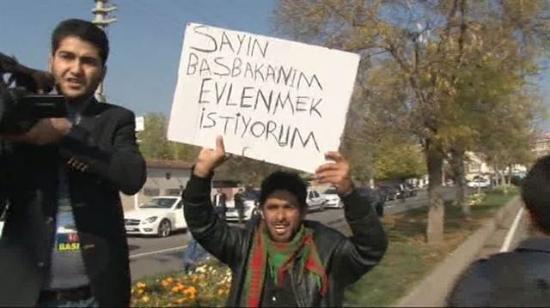 Bu arada bir vatandaşın da ''Evlenmek istiyorum'' yazan bir pankart taşıdığı görüldü.