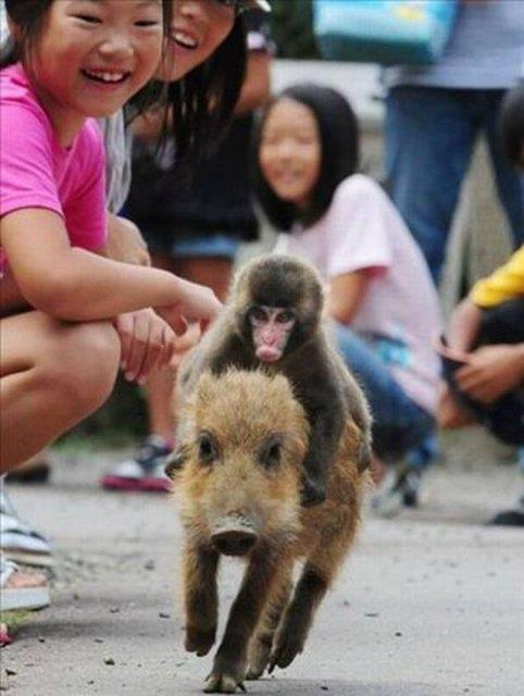 Bu fotoğrafta hiçbir fotoğraf hilesi yok. Tamamen gerçek. Ama bir göz yanılması var. Fotoğraftaki maymun aslında bu karenin çekildiği arabanın üstünde cama yapışık vaziyette duruyor.