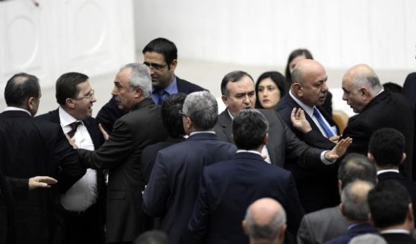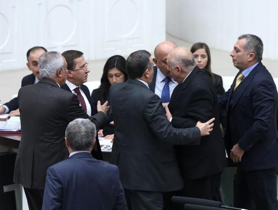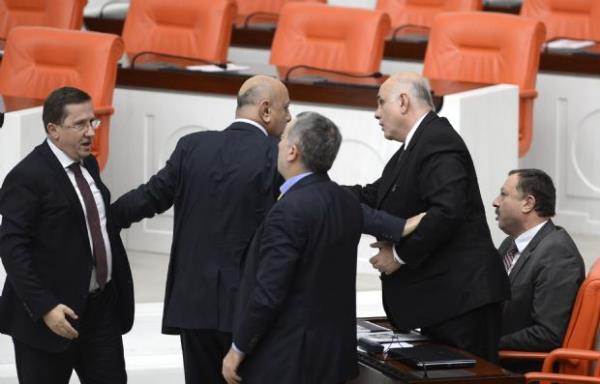 Özel kürsüdeki Akar’a “O raporları okudun mu, oku da öyle konuş” şeklindeki söz atmasına Akar'ın da, “Okudum meydancı Recep” sözleri bir anda kavgaya dönüştü. MHP sıralarından AK parti sıralarına kadar gelen Lütfü Türkkan’ın, “Ne demek meydancı Recep ne göstereceksin” sözleri Genel Kurul’u karıştırdı. Özel’in “Göstereyim gel sana” sözlerine, Türkan’ın “Avradına göster” dediği öne sürüldü. Bu sözler üzerine AK Partililer Türkkan’ın üzerine yürüdü. Salonun ortasına kadar gelen milletvekilleri tartışmaya başlayınca oturuma ara verildi.