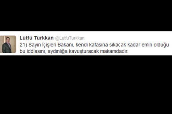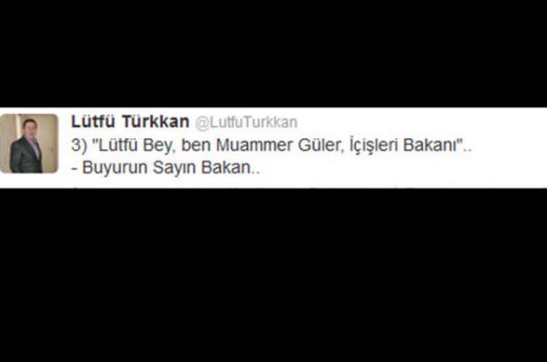 MHP Kocaeli Milletvekili Lütfü Türkkan, İçişleri Bakanı Muammer Güler ile telefon görüşmesini Twitter'dan yazdı