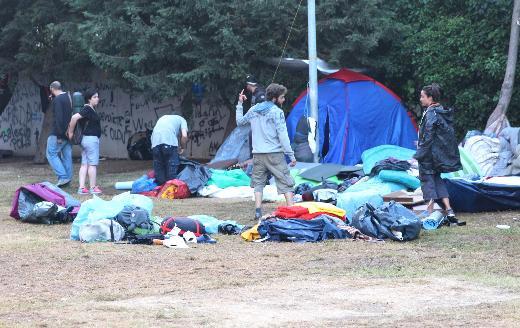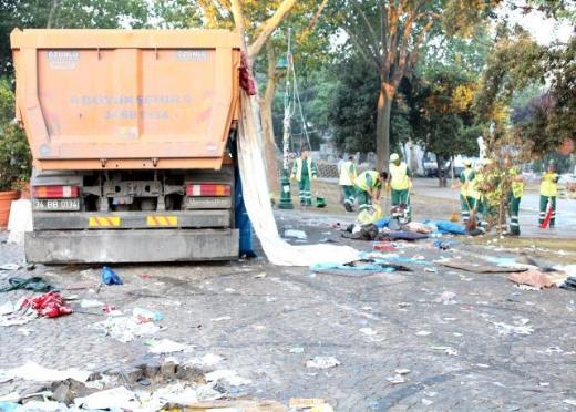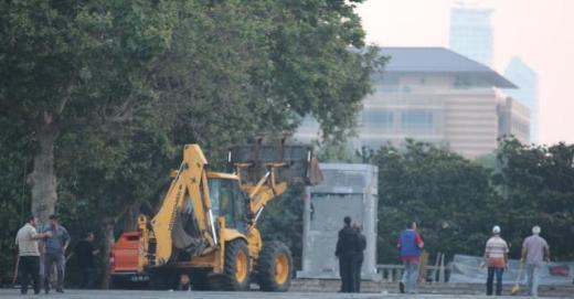 Gezi Parkı’ndan eylemcilerin boşaltılmasının ardından çadırlar belediye işçileri tarafından dozerler yardımıyla kaldırılarak kamyonlara yüklendi.