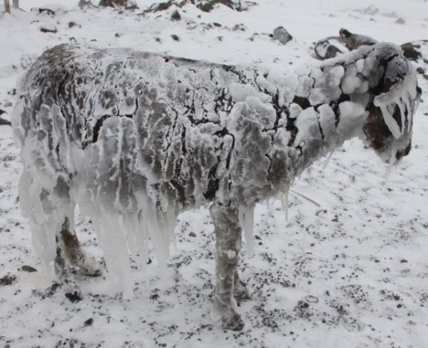 Siverek'in Karacadağ bölgesinde Karlık köyünde kırsala terk edilen başıboş eşeklerin, soğuk hava nedeniyle üzerileri buz tabakasıyla kaplandı