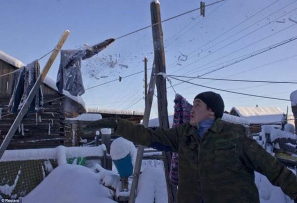 Oymyakon'da hava sıcaklığı bazen o kadar düşüyor ki dolma kalemlerin mürekkebi donuyor, insanların gözündeki gözlükler buz tutuyor ve piller güç kaybediyor.