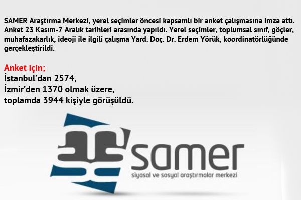 SAMER Araştırma Merkezi, yerel seçimler öncesi kapsamlı bir anket çalışmasına imza attı.