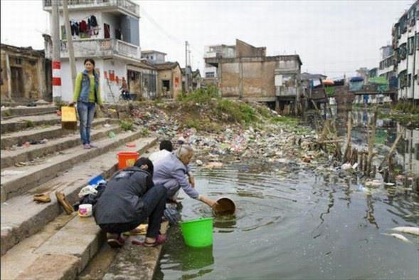 Kent sokakları elektronik çöplerle dolu. Metallerin asitle yıkanmasıyla çıkan kirli su, şehrin içine böyle yayılıyor.