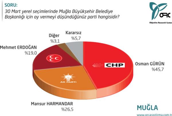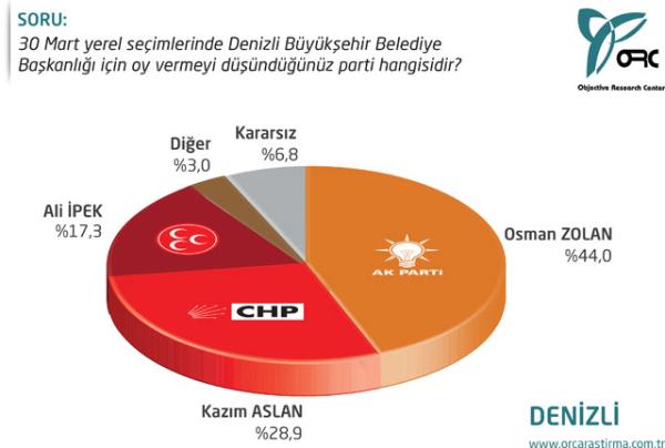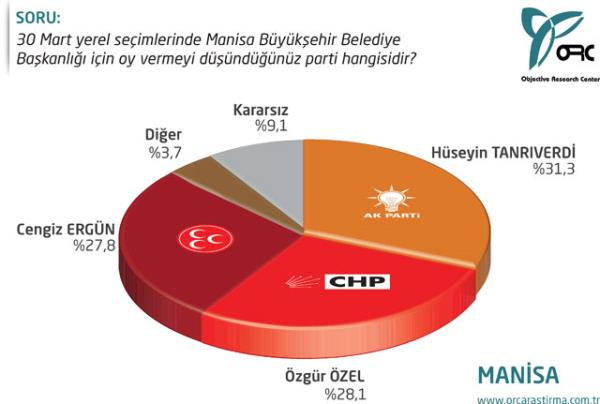 ORC Araştırma Şirketi tarafından İzmir, Aydın, Manisa, Muğla ve Denizli için yapılan yerel seçim anketinin sonuçları...