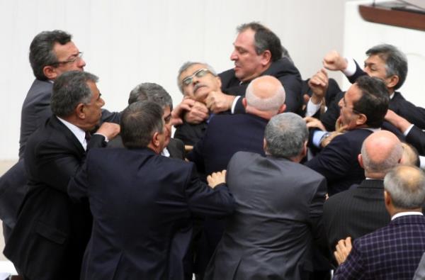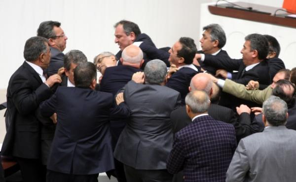 Meclis'te yumruk yumruğa kavga