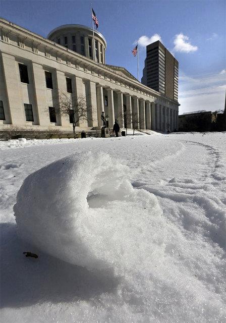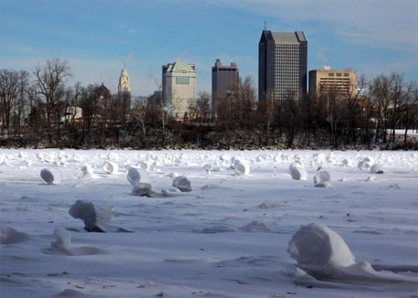 Şehrin her tarafında binlerce silindir şeklinde devasa kar topları oluştu...