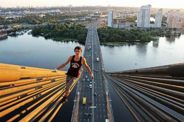 Hobisi gerçek anlamda "hayatın ucunda yaşamak" olan fotoğrafçı Kirill Oreshkin, çatıların tepesinde insanların yüreğini ağzına getiren bu karelere imza atıyor.