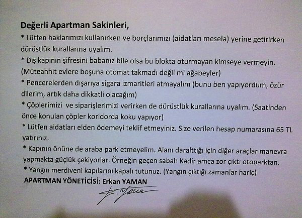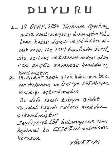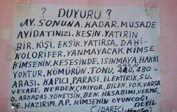 Apartman Yöneticilerinin İlginç Duyuruları...