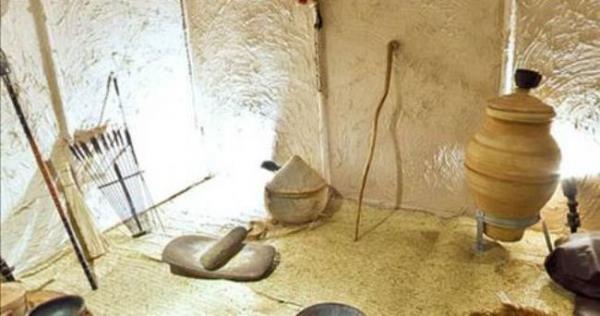 Ev, ağaç dallarından yapılmış hasır çatının altında birkaç kaç mutfak eşyasını içinde barındıran tek göz odadan oluşuyor.