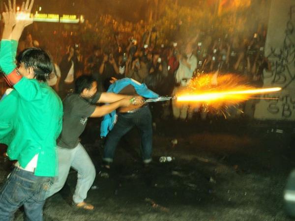 Olaylar sırasında polisin karşısına geçerek bayrak açan gençler benzer görüntüler oluşturdu.