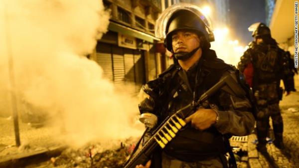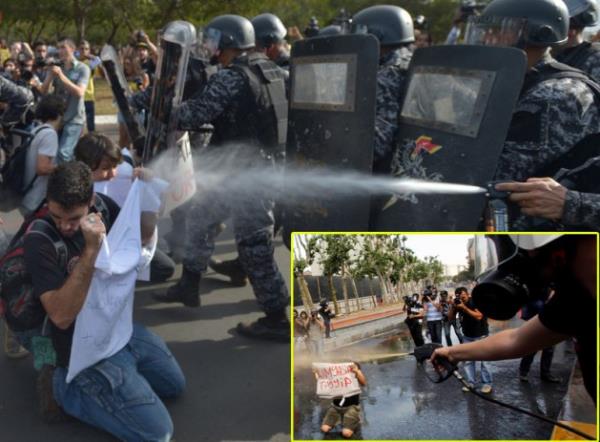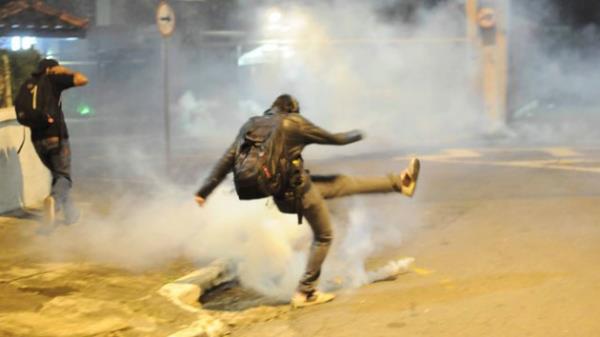 Gezi Parkı olaylarında göstericiler polise börek ikram ederken, Brezilya'da ise çiçek verdi