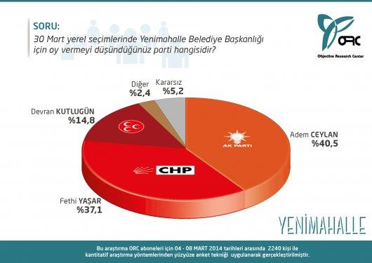 ORC Araştırma seçimlere 20 gün kala Yenimahalle, Keçiören, Çankaya, Etimesgut, Gölbaşı, Mamak ve Altındağ'ın son oy oranlarını yayınladı.