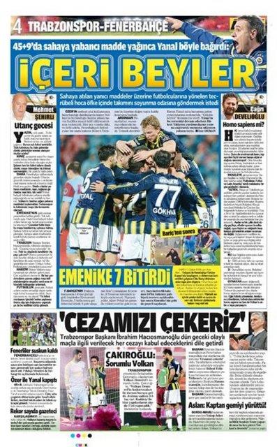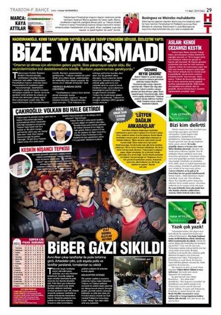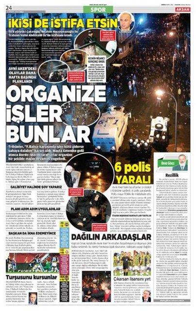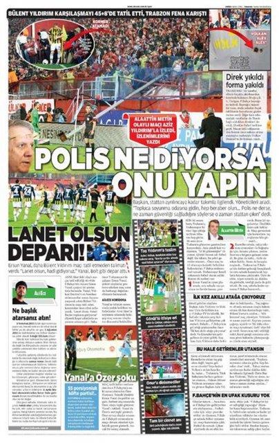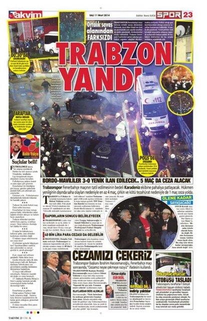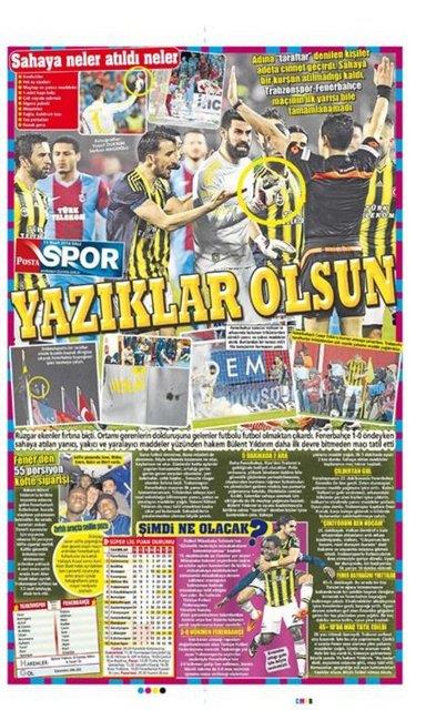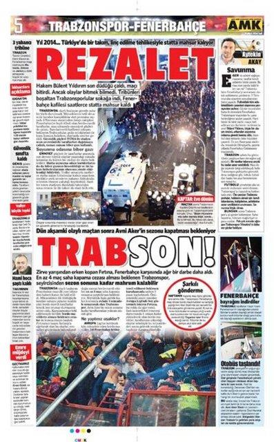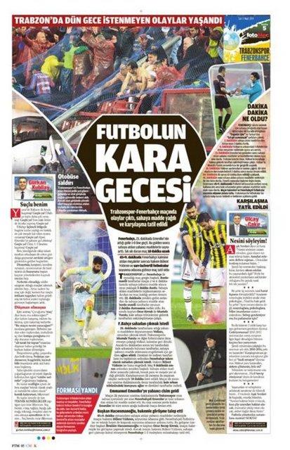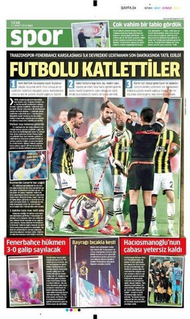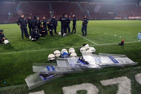 "Trabzonspor ve Fenerbahçe arasında oynanan maçta her şey oldu! Metal maddeler atılması nedeniyle maç tatil edildi. Türk polisi oyuncuları kalkanlarıyla korudu" -