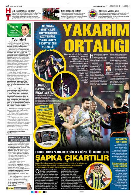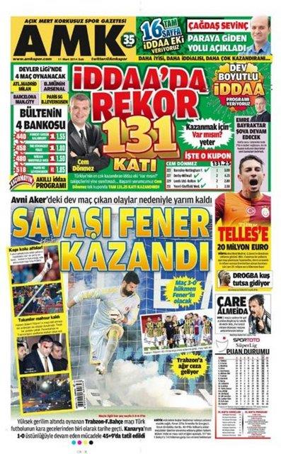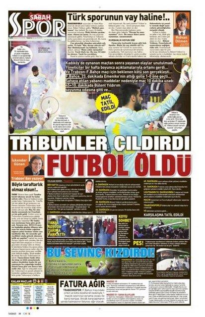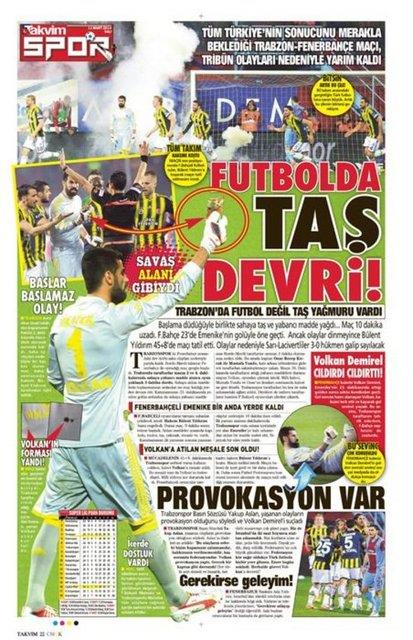 "Trabzonspor ve Fenerbahçe arasında oynanan maçta saha savaş alanına döndü. 23. dakikada Emenike'nin golünün ardından duran oyun, devrenin uzatmalarında tatil edildi" -