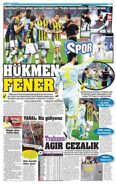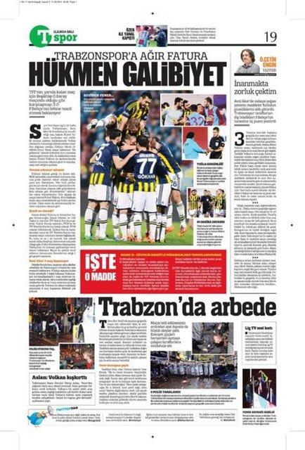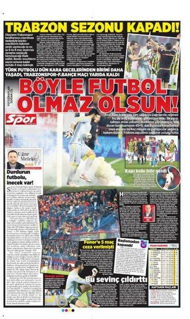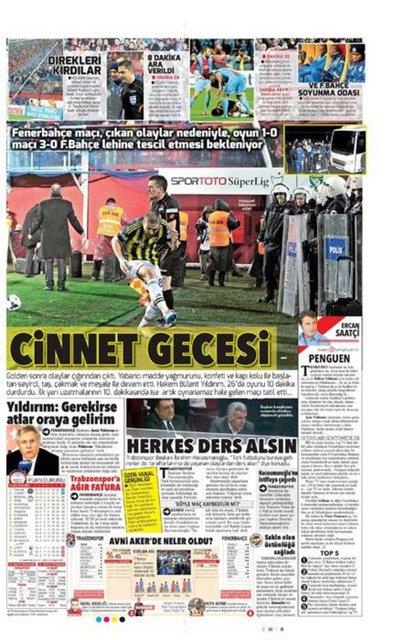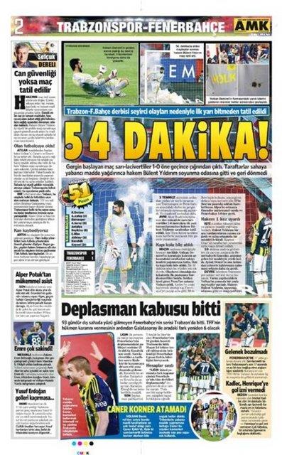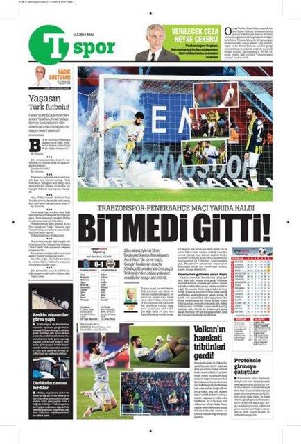 "Taraftarların şiddeti, Trabzonspor'un Fenerbahçe ile olan maçını tatil ettirdi. İki uyarının ardından hakem üçüncüsünde maçı bitirdi" -