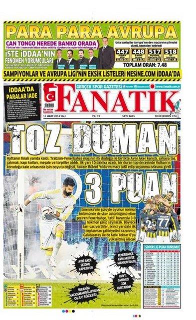 "Hakem Bülent Yıldırım'ın kararı Fenerbahçe kalecisi Volkan Demirel'in hemen arkasına atılan maddelerden sonra geldi. Atılan maddeler arasında kayalar ve işaret fişekleri de vardı" -