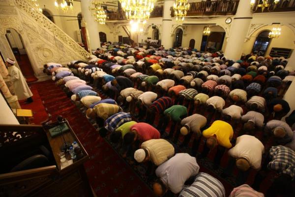 İzmir'de Berat Kandili dolayısıyla vatandaşlar Kemeraltı'nda bulunan Tarihi Hisar Camisi'nde namaz kılıp dua etti.