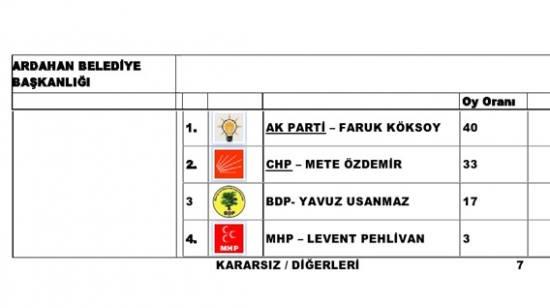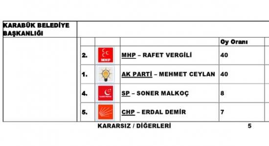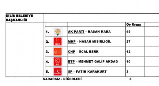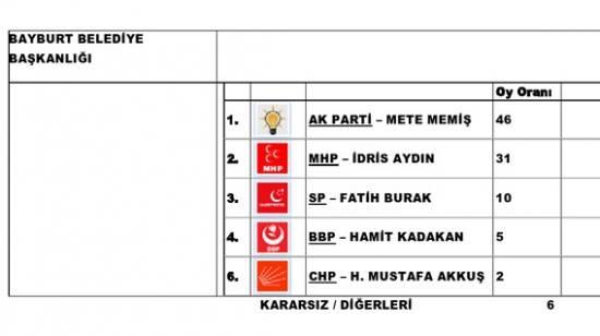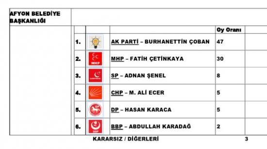 MAK Araştırma şirketinin, Mart 2014 tarihinde, büyükşehir olmayan 47 ildeki araştırma sonuçları