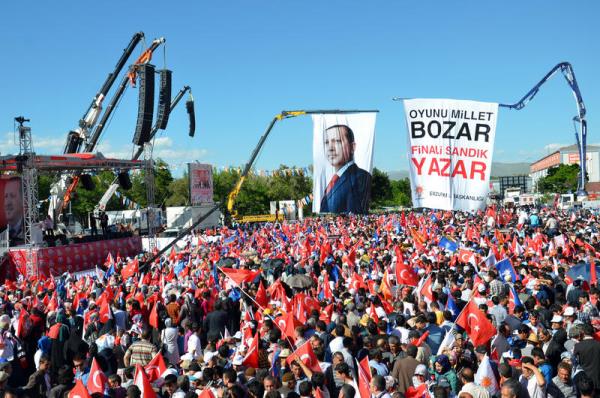 Erzurum'da, AK Parti İl Başkanlığı’nın organizasyonuyla "Büyük Oyunu Bozmaya Hadi Tarih Yazmaya" sloganıyla düzenlenen "Milli İradeye Saygı" mitinginin hazırlıkları sürüyor. Vatandaşlar, ellerinde bayraklarla Erzurum’daki İstasyon Meydanı’na geldi.