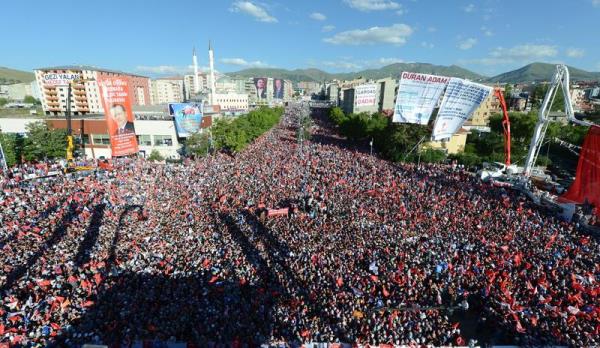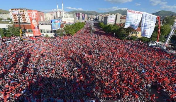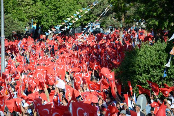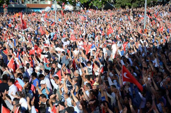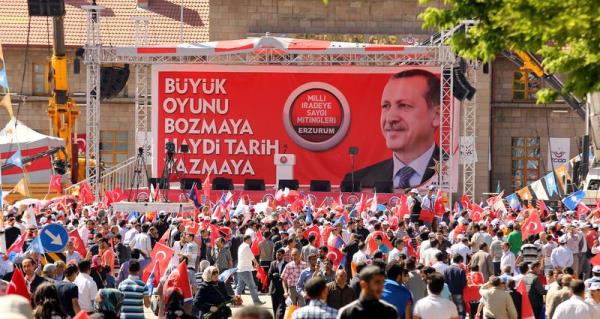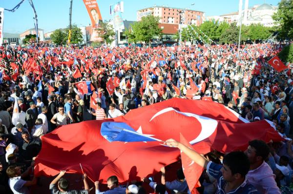 AK Parti Genel Başkanı ve Başbakan Recep Tayyip Erdoğan, Erzurum istasyon caddesi üzerindeki meydanda düzenlenen "Milli iradeye saygı mitingi" çerçevesinde vatandaşları selamladı.