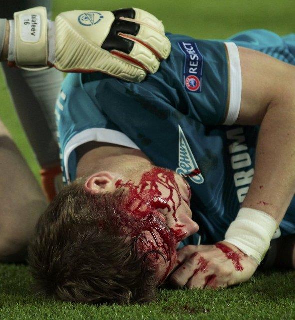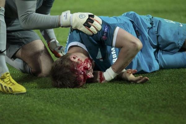 Yerdeki haliyle korkutan oyuncuya takım arkadaşı Vyacheslav Malafeev geldi ve hemen sağlık görevlilerinin gelmesini istedi.