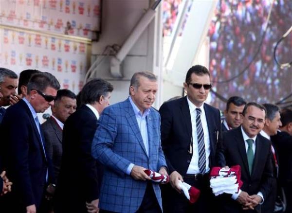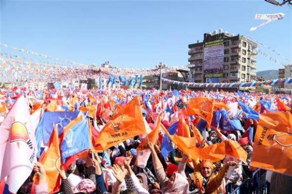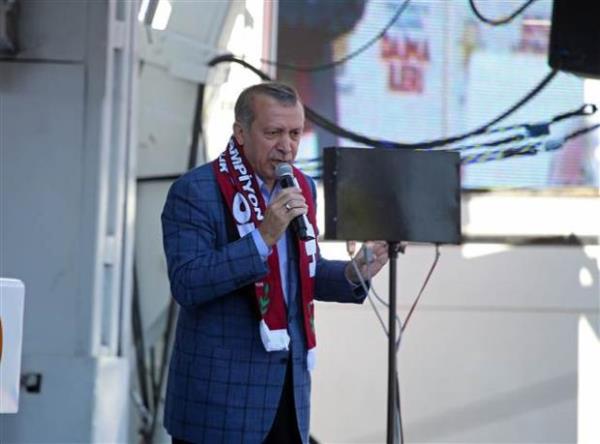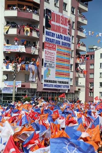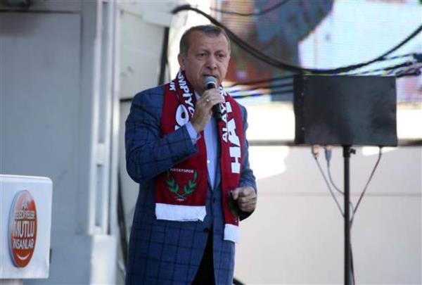 Erdoğan, seçim otobüsüyle Hatay'da 75’inci Bulvar’daki İtfaiye Meydanı’nda düzenlenen mitingde konuştu.