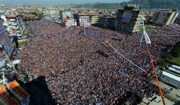 Başbakan Erdoğan'ın Hatay mitinginde insanlı istihbarat hava aracı dikkat çekti.