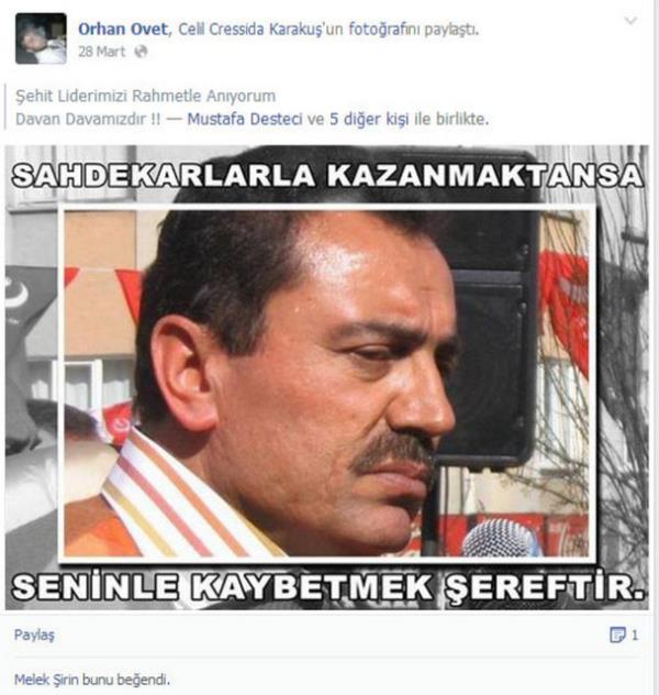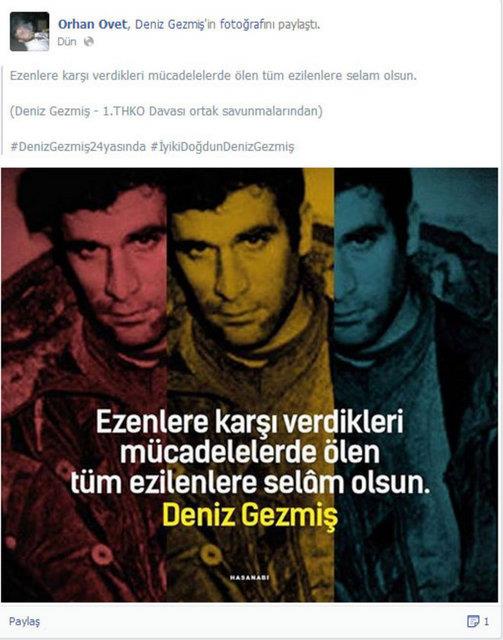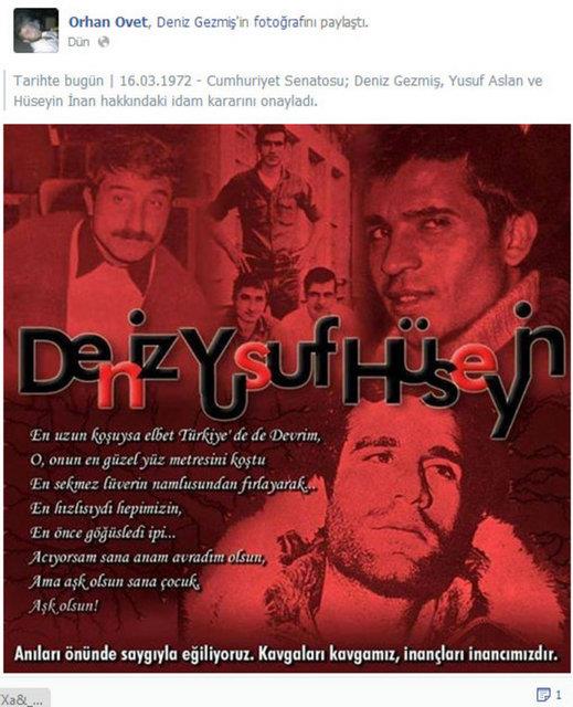 Övet'in Facebook profilinde ayrıca Başbakan Tayyip Erdoğan'ın bir fotoğrafı ile Deniz Gezmiş, Ahmet Kaya, Yılmaz Güney gibi isimlerin fotoğrafları ve sözleri de yer alıyor.