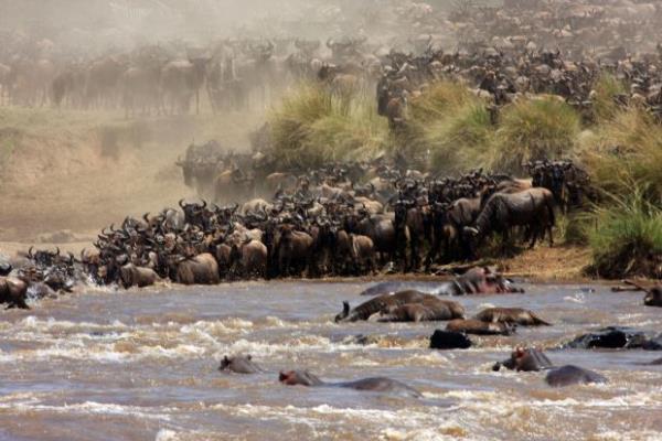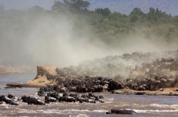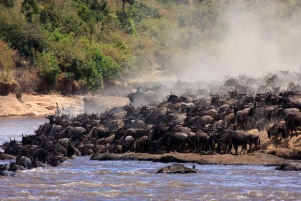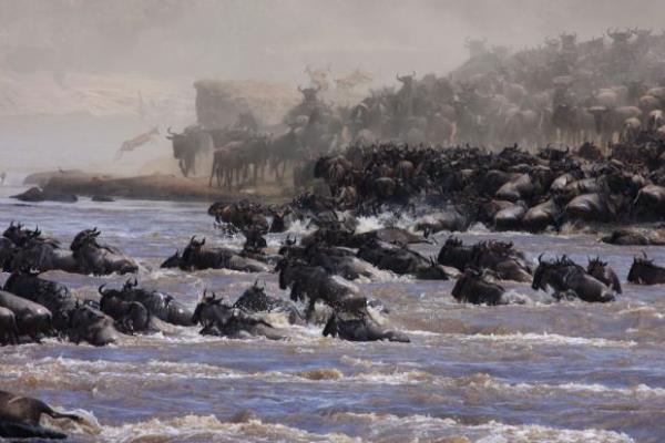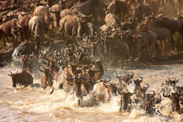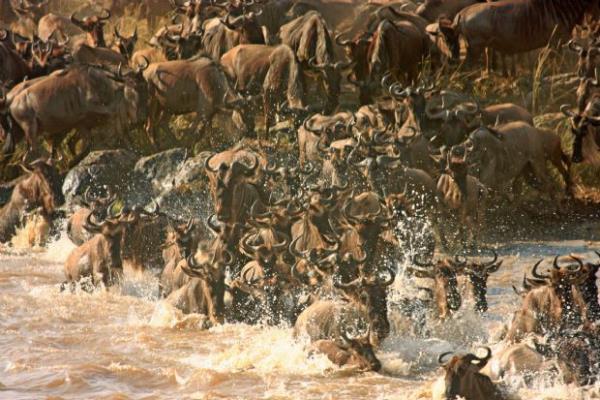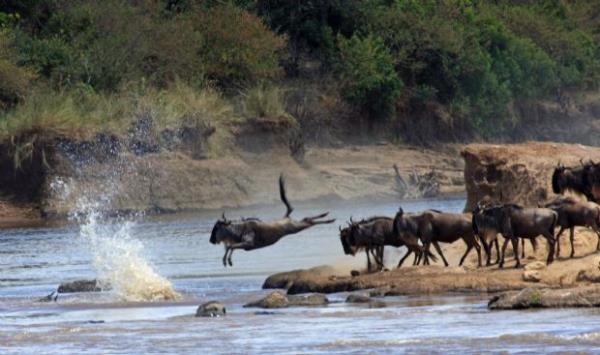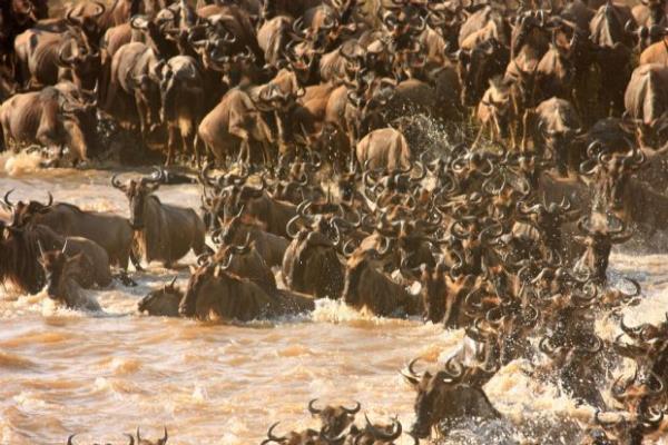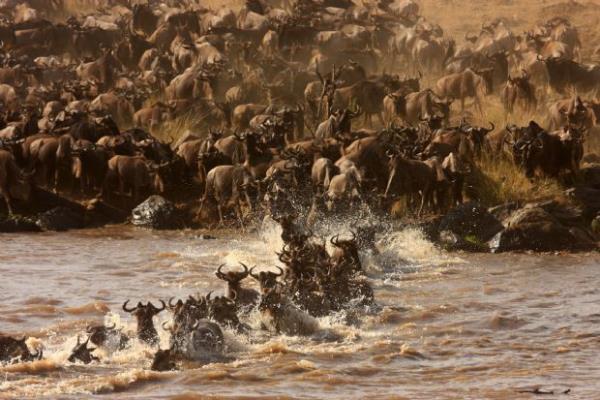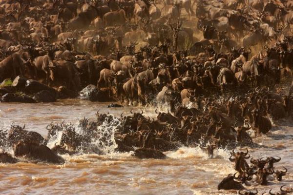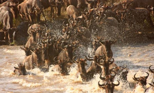 Afrika Tanzanya'da Serengeti Ulusal Parkı'nın uçsuz bucaksız otlarla çevrili bölgesi ile Kenya'nın Masai Mara Ulusal Parkı'nın yeşillikleri arasında her yıl Temmuz ? Ağustos aylarında binlerce antilop,zebra Mara Nehrine doğru yola alır. -