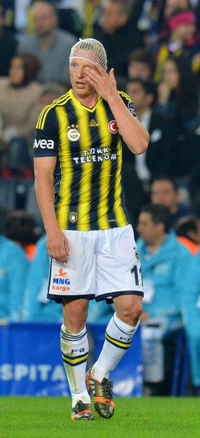 Başı sarılan sarı-lacivertli futbolcu mücadelesini bu şekilde sürdürdü.