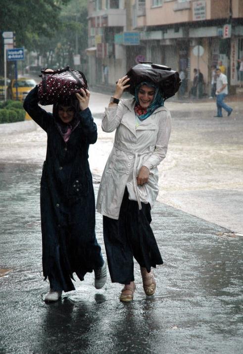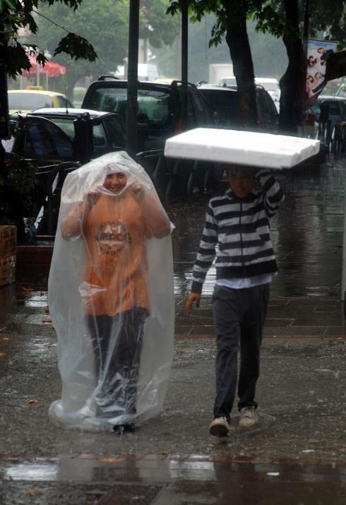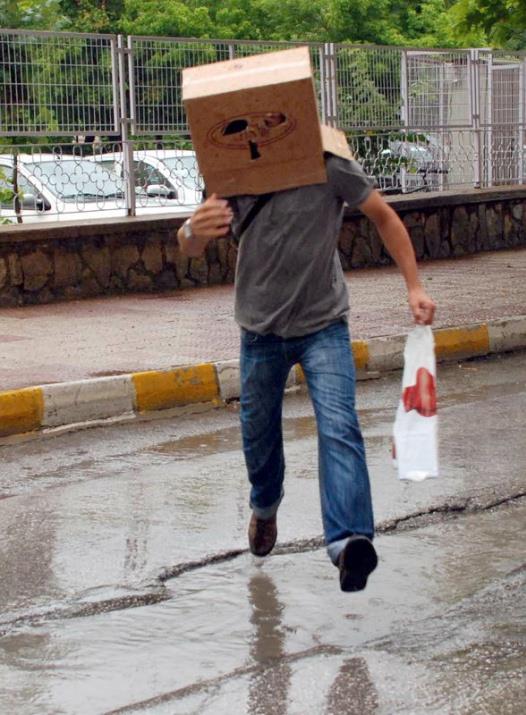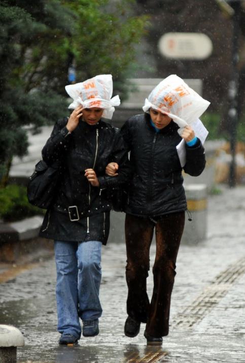 Sokakta, caddede, maçta, konserde yakalandıkları yağmurdan buldukları pratik çözümlerle korunmaya çalışan insanlar muhabirlerin gözünden kaçmadı.