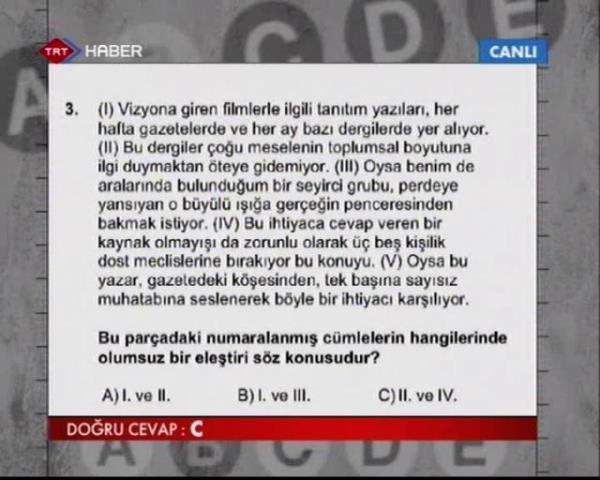 Lisans Yerleştirme Sınavları'nın son basamağı olan LYS-3 yapıldı.İşte LYS soru ve cevapları