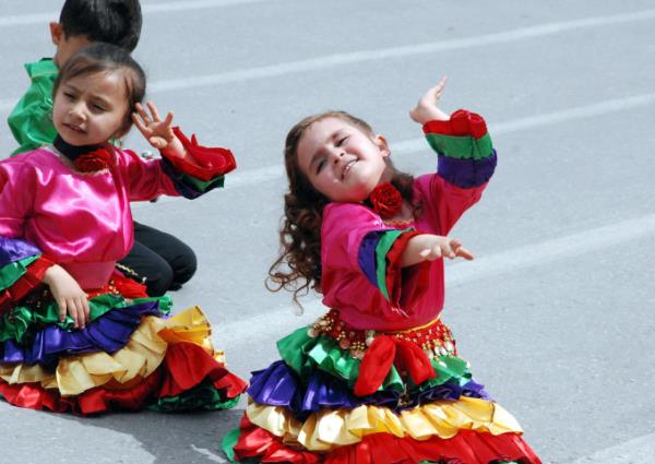 Kutlamalara katılan çocukların gösterileri ilgiyle izlendi.